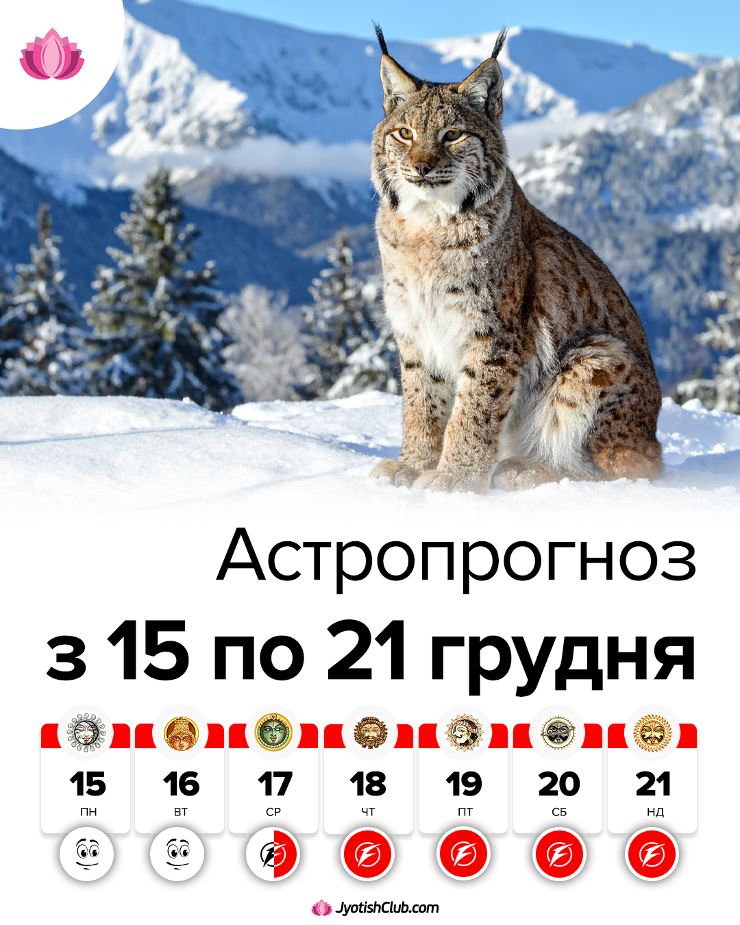 Друзі, нас чекає складний тиждень. Напруженими днями будуть друга половина середи (17 грудня), четвер (18 грудня), п’ятниця (19 грудня), субота (20 грудня) і неділя (21 грудня). Весь інший час буде нейтральним.