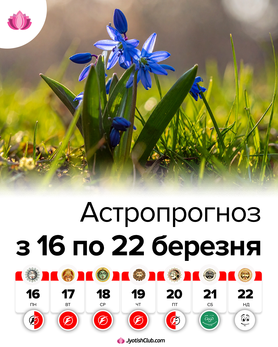 Друзі, нас чекає різний за настроєм тиждень. Напруженими будуть друга половина понеділка (16 березня), вівторок (17 березня), середа (18 березня), четвер (19 березня), перша половина п’ятниці (20 березня). Сприятливим днем тижня буде субота (21 березня). Весь інший час пройде в нейтральних енергіях. До 18 березня 04:56 за київським часом ми будемо проживати фазу спадаючого Місяця. […]