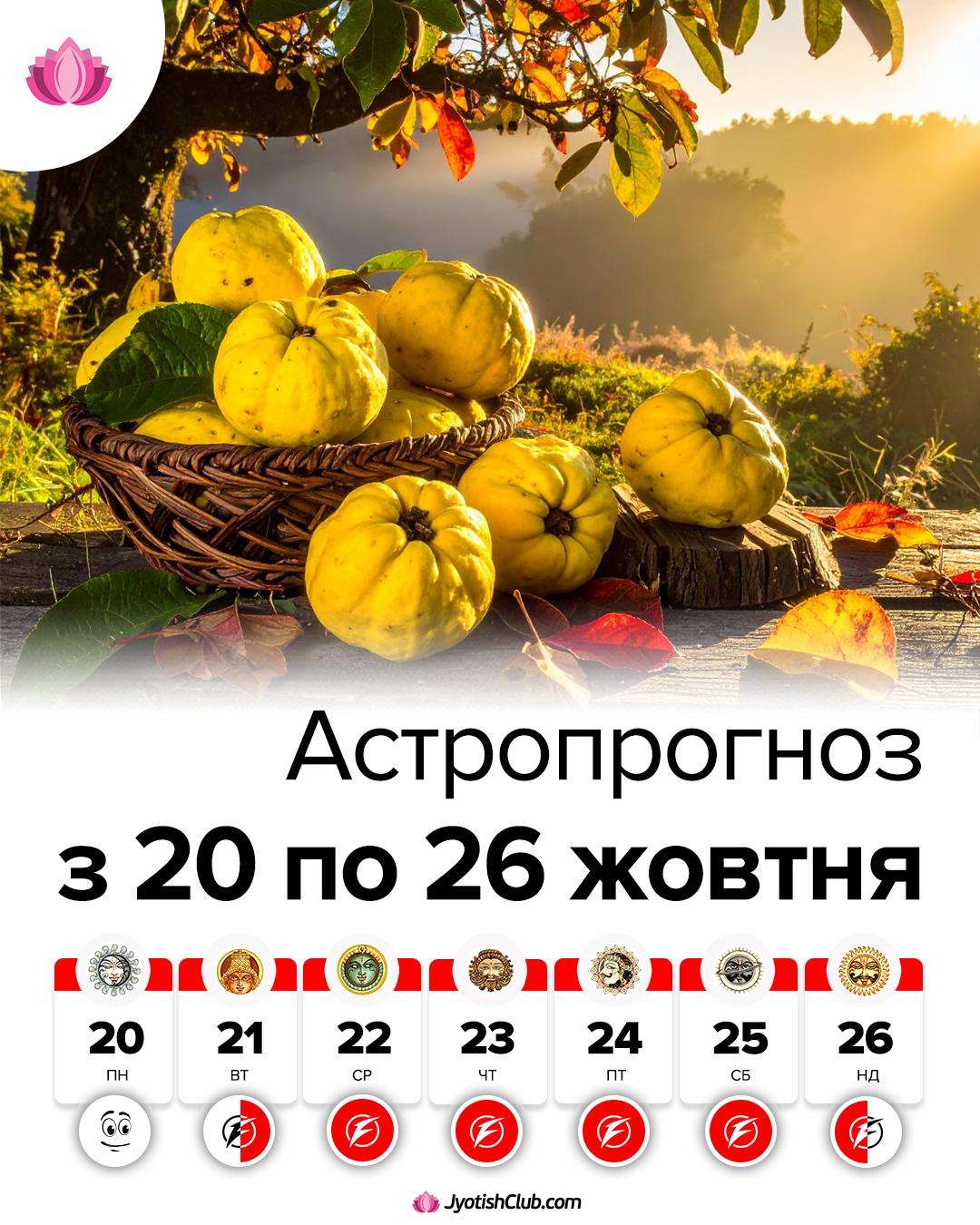 Друзі, нас чекає в більшій мірі напружений тиждень. Нейтральними днями будуть понеділок (20 жовтня), перша половина вівторка (21 жовтня) і друга половина неділі (26 жовтня). Весь інший час буде проходити в напружених енергіях. У понеділок, 20 жовтня, до 20:48 за київським часом ми будемо проживати фазу спадаючого Місяця. Коли Місяць спадає, ми не рекомендуємо починати […]